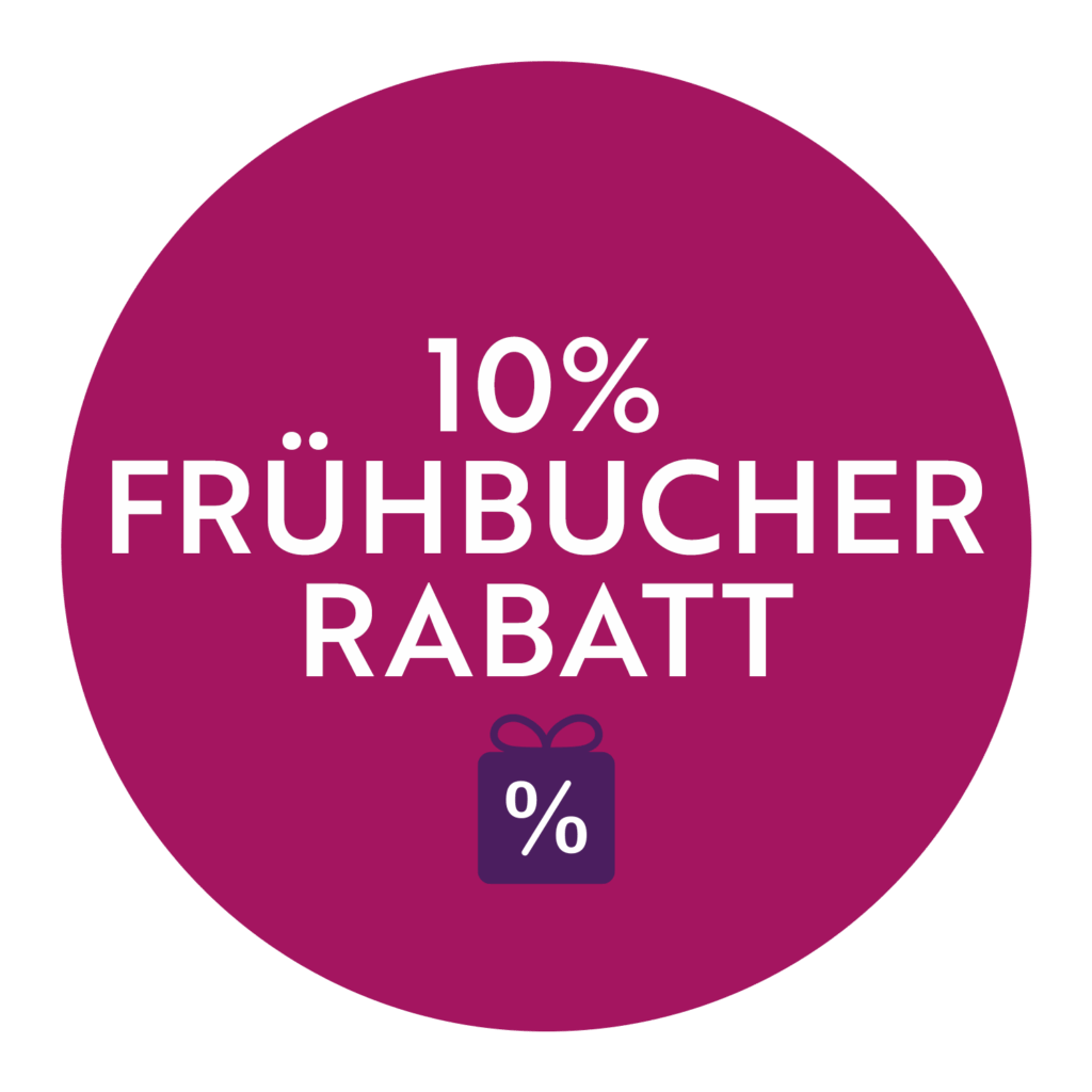 Den 10 % Frühbucher-Rabatt gibt es nur für kurze Zeit. Wir freuen uns auf dich